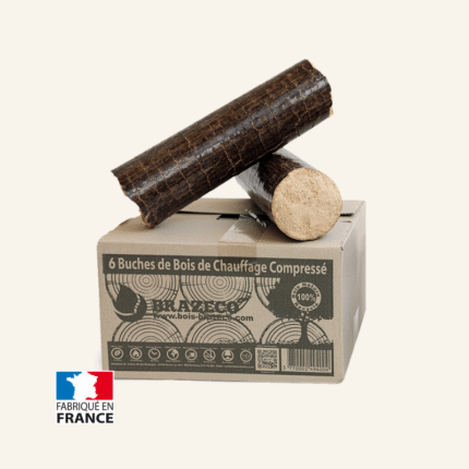 De premium geperste houtblokken van Brazeco, volledig natuurlijk en geproduceerd in Frankrijk, zijn verkrijgbaar in dozen van 6 blokken. Ze bieden een uitzonderlijk verwarmingsvermogen dankzij hun lage vochtpercentage van minder dan 9%, wat een langdurige verbranding garandeert.